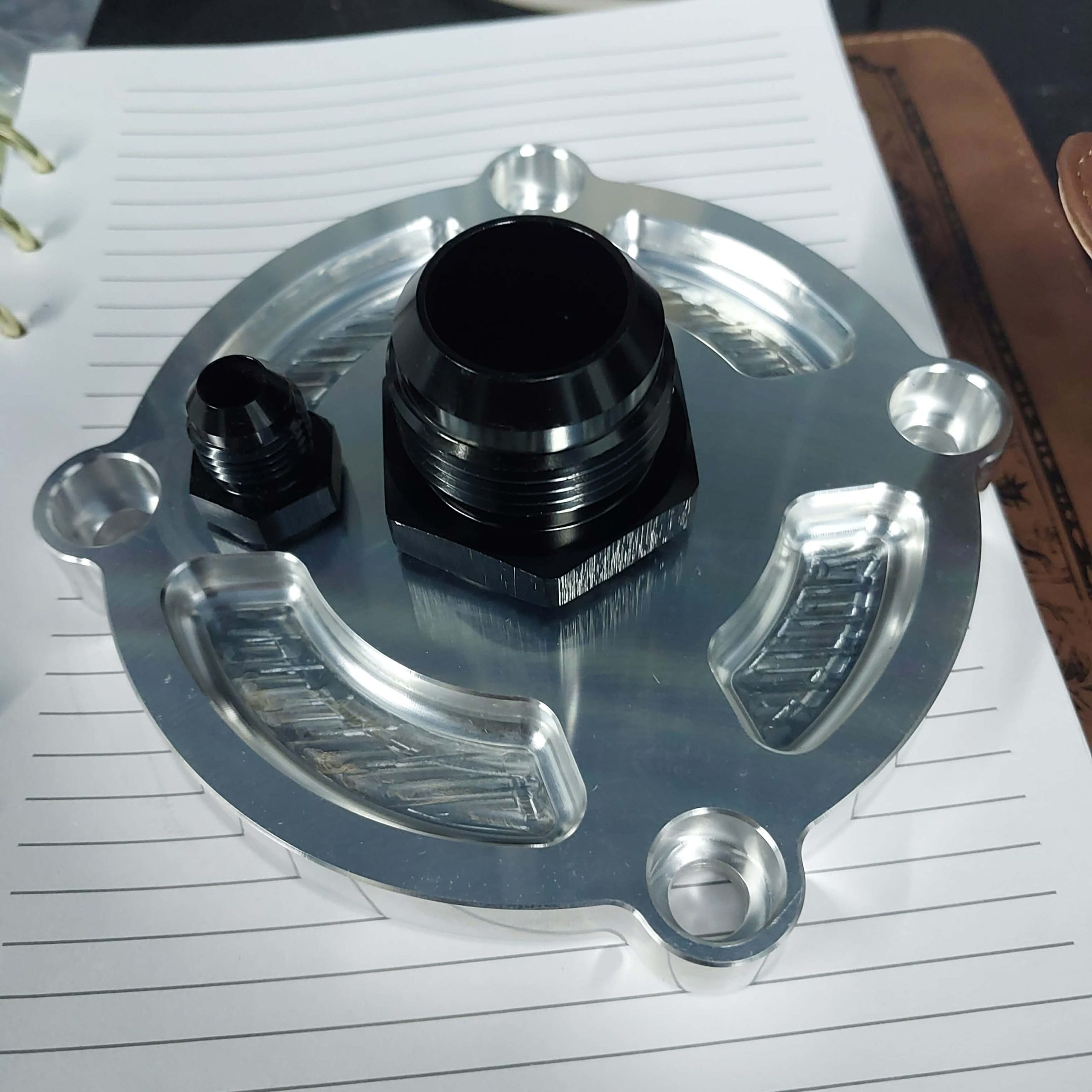 Barra and SOHC water pump delete plate with -16 and -6 inlets