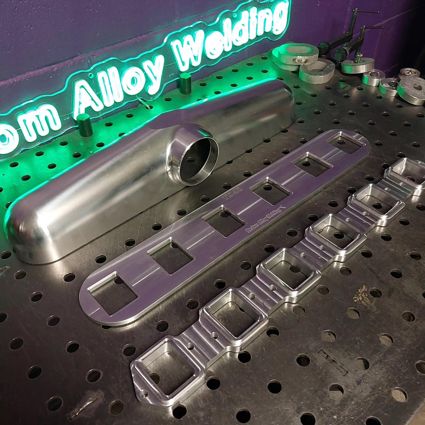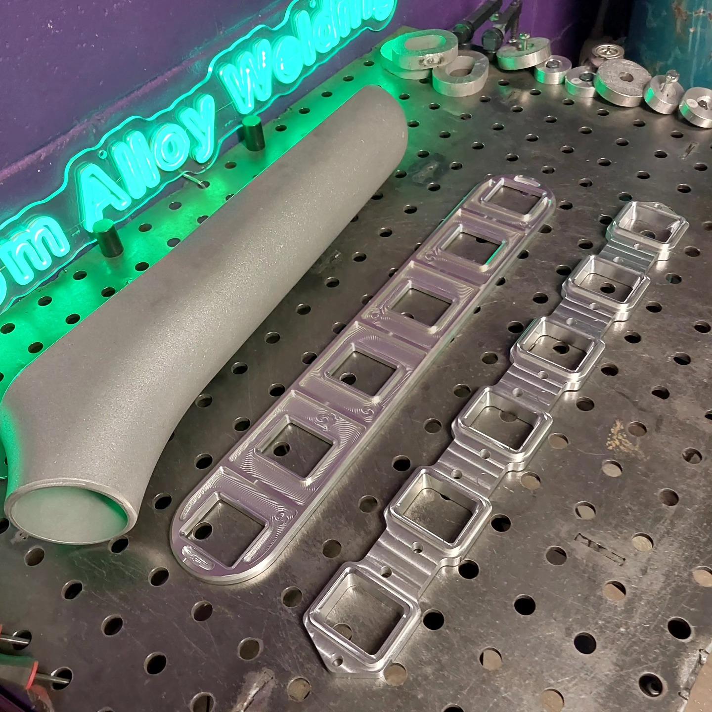 Nissan TD42 diy intake kit, The flange and base plate are designed for a 50×60 runner, supplied is 50×50 shs which needs to be slit down the side and rejoined to make it 50×60. Option for cast front facing plenum top or billet centre feed.